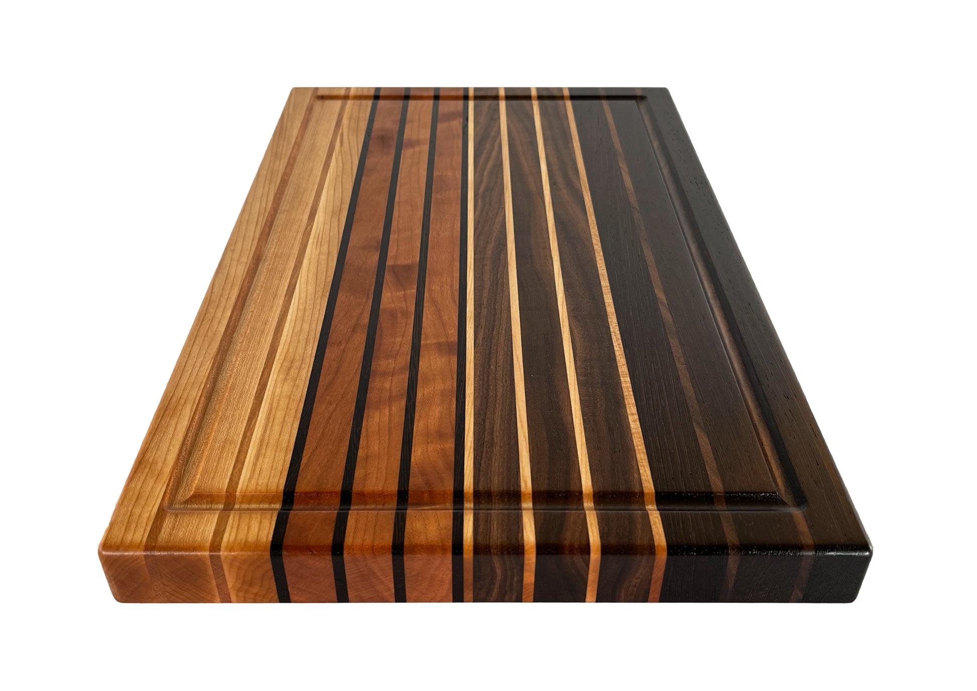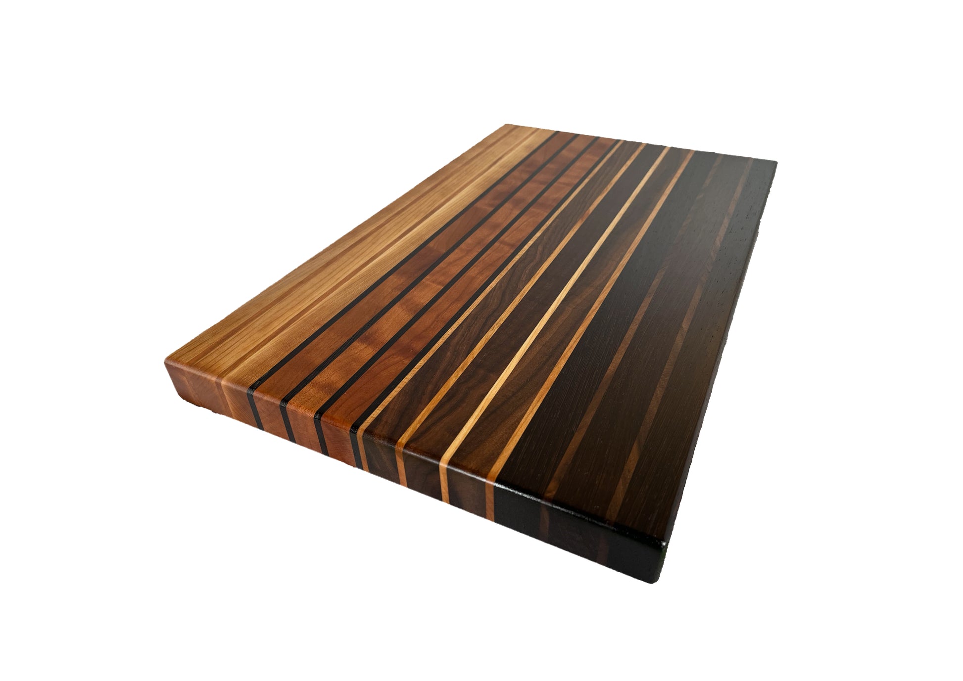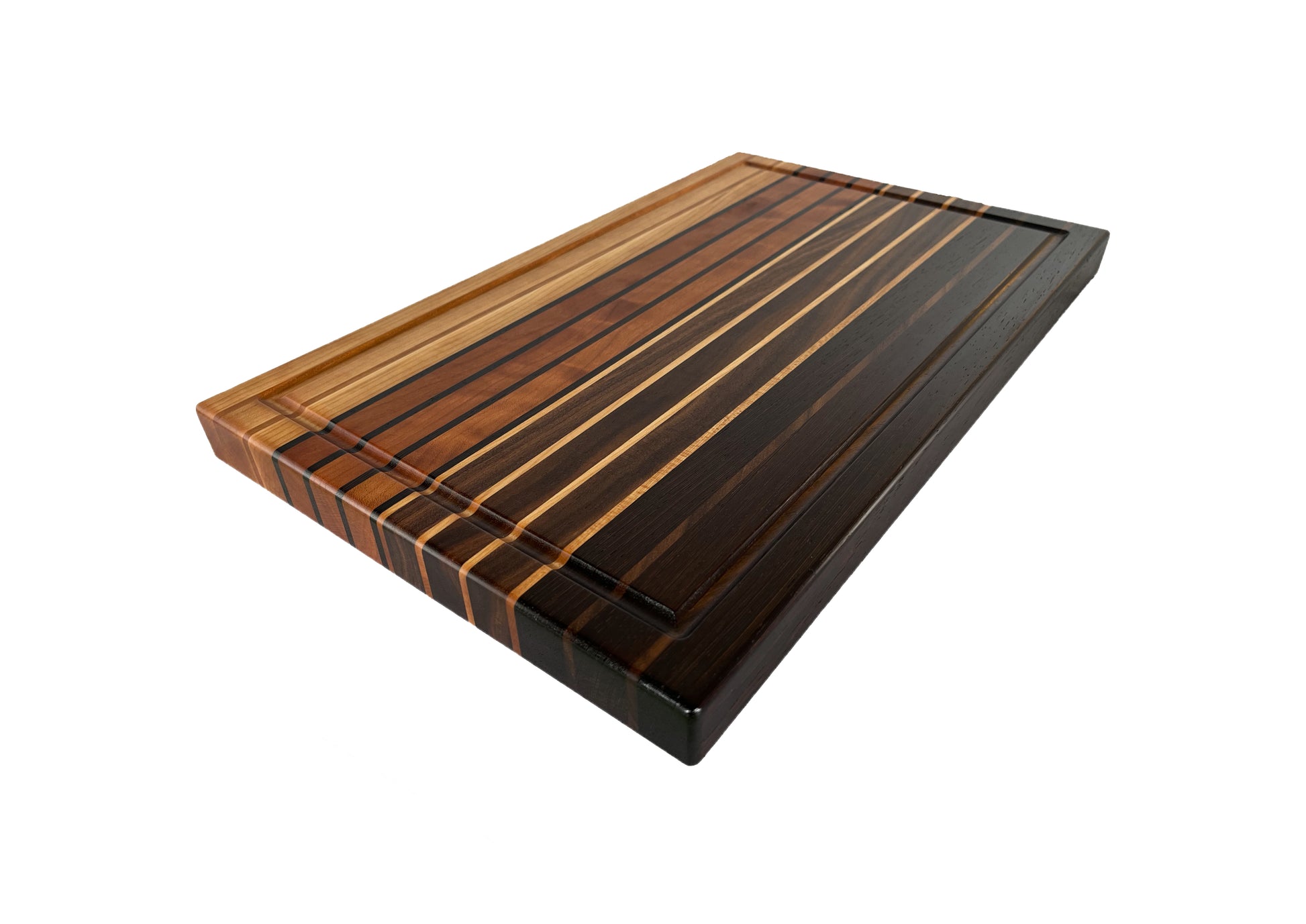 A "Canvas" of hardwood. Flawless lamination, blending 24 individual strips of Walnut, Maple, Cherry & Wenge, provides this edge grain board its unique characteristics.