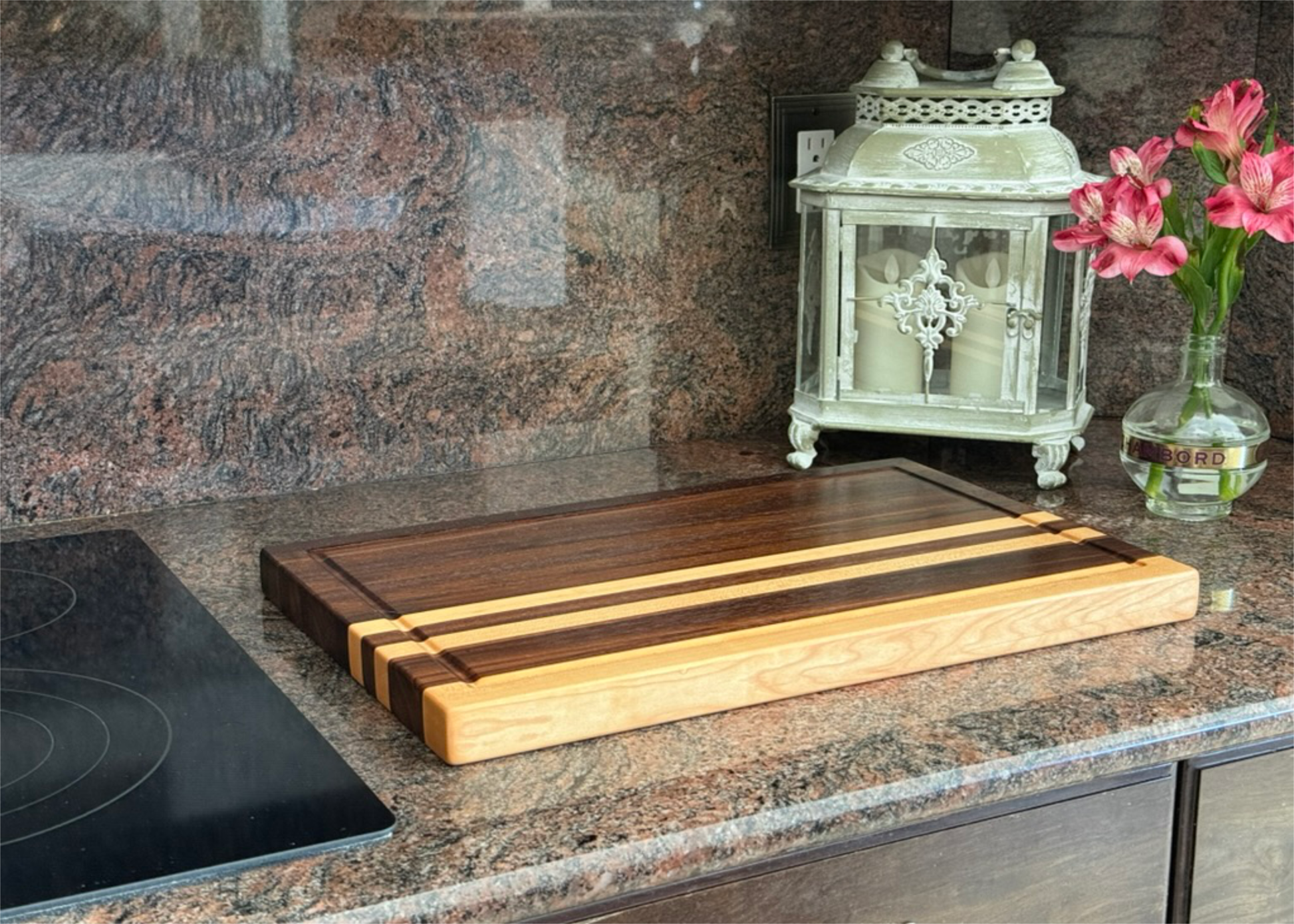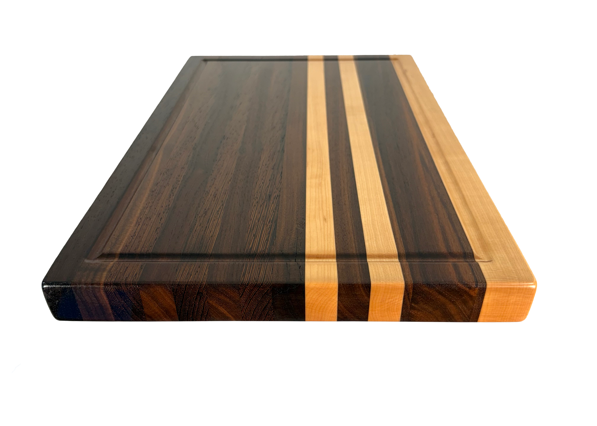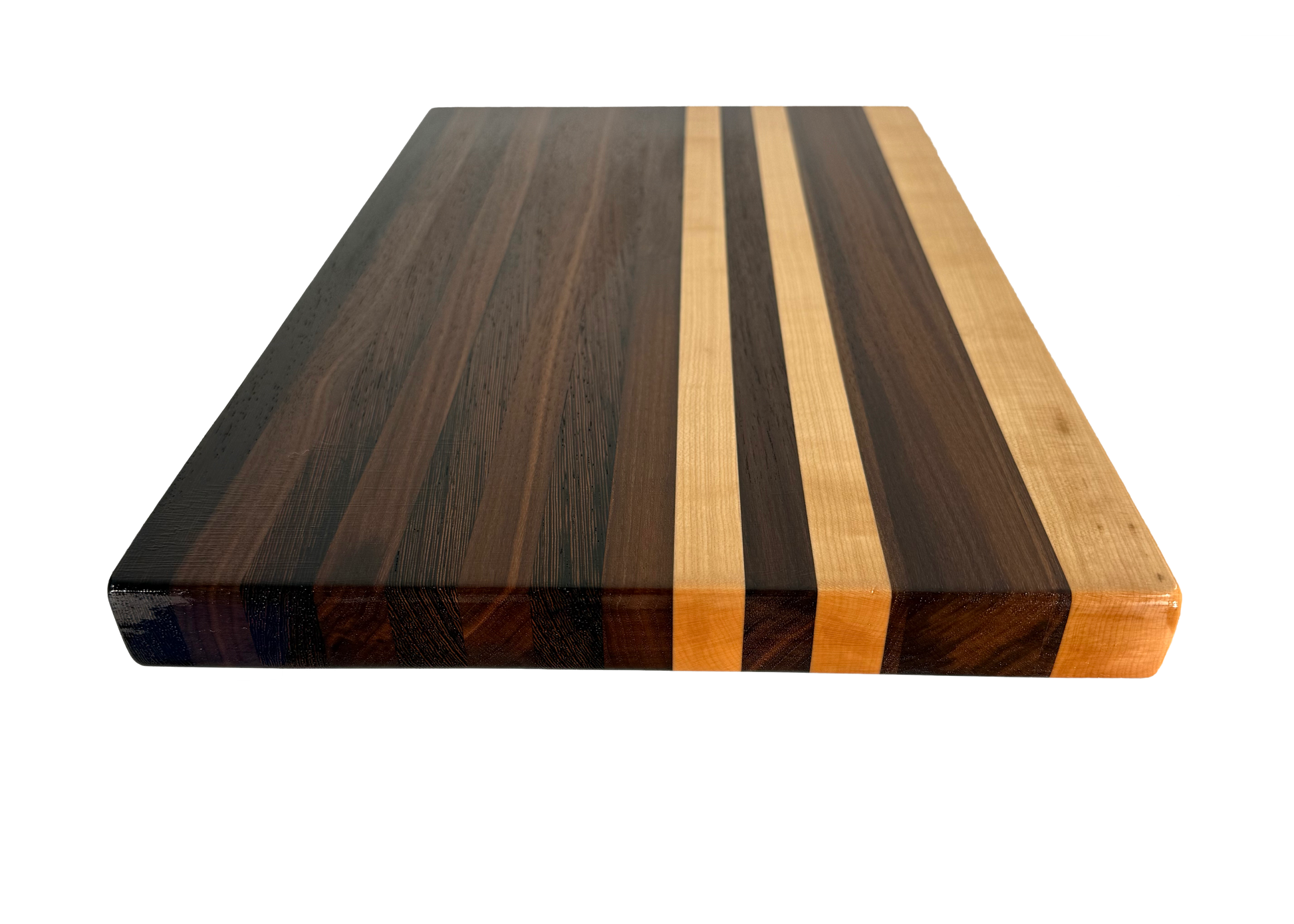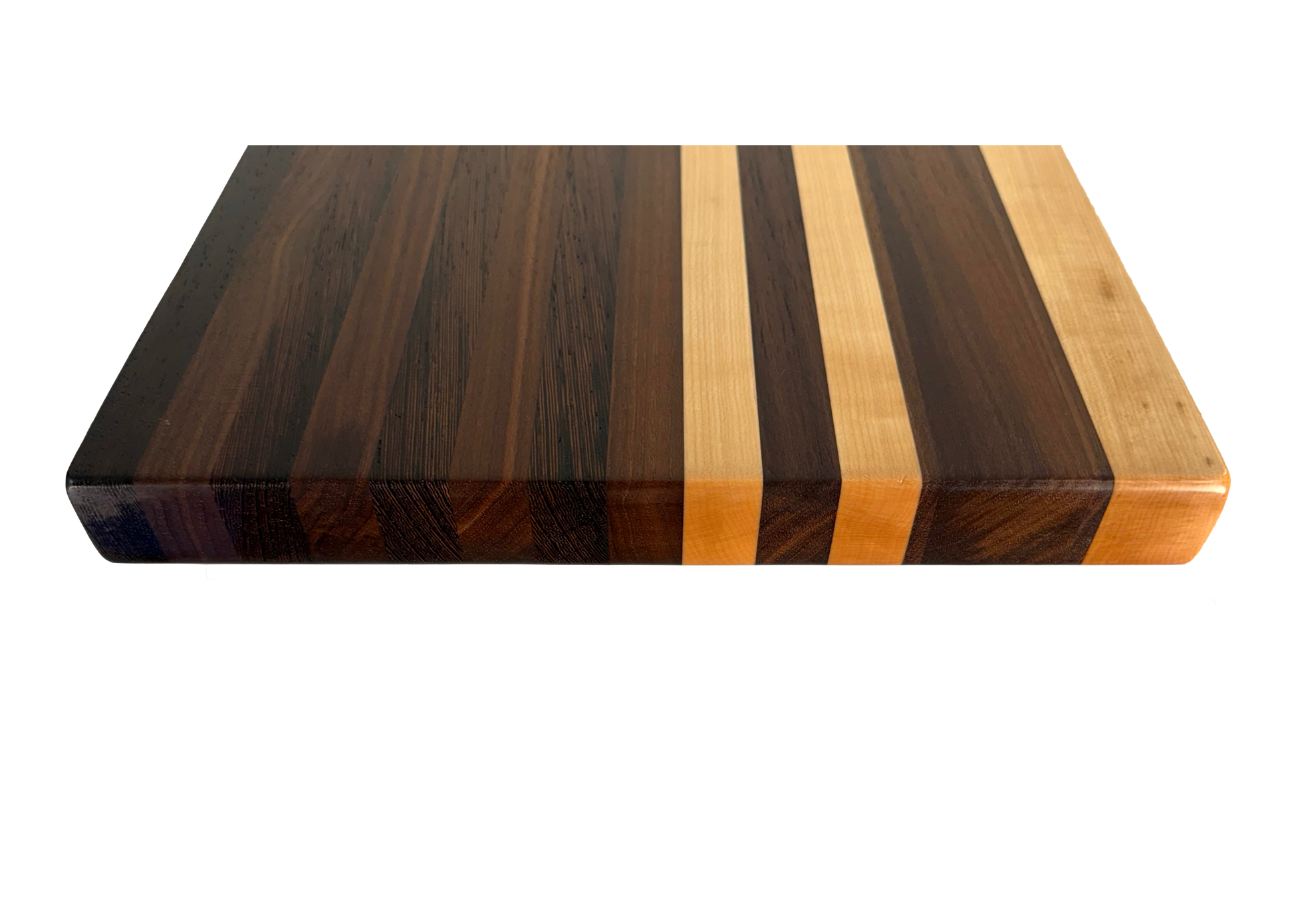 A "Canvas" of hardwood. Flawless lamination, blending 15 individual strips of Walnut, Maple, & Wenge, provides this edge grain board its unique characteristics.